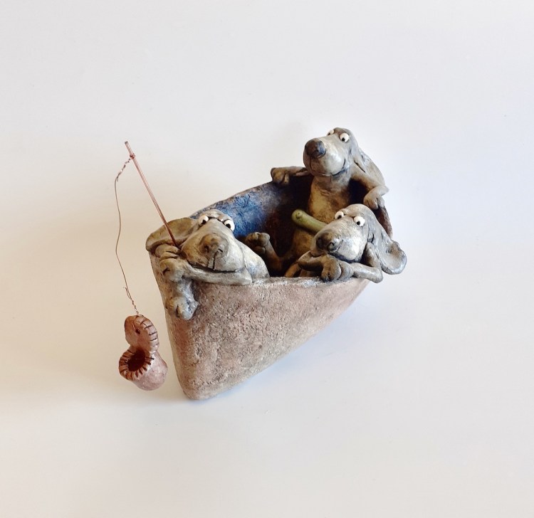 Ballade en mer, Terre cuite patinée, H13/24cm (disponible à la galerie art & Motion -Cassel)