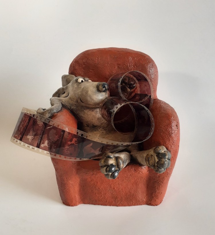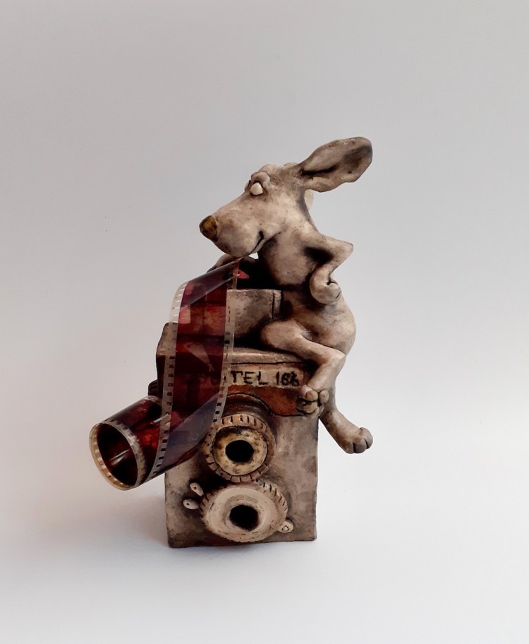 Se faire un film, terre cuite patinée, H15cm/13cm 180 euros