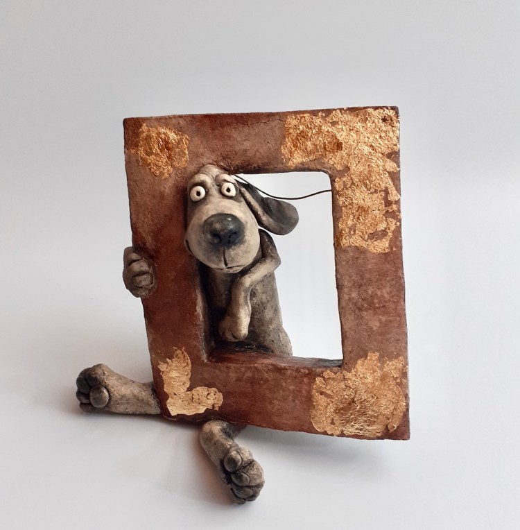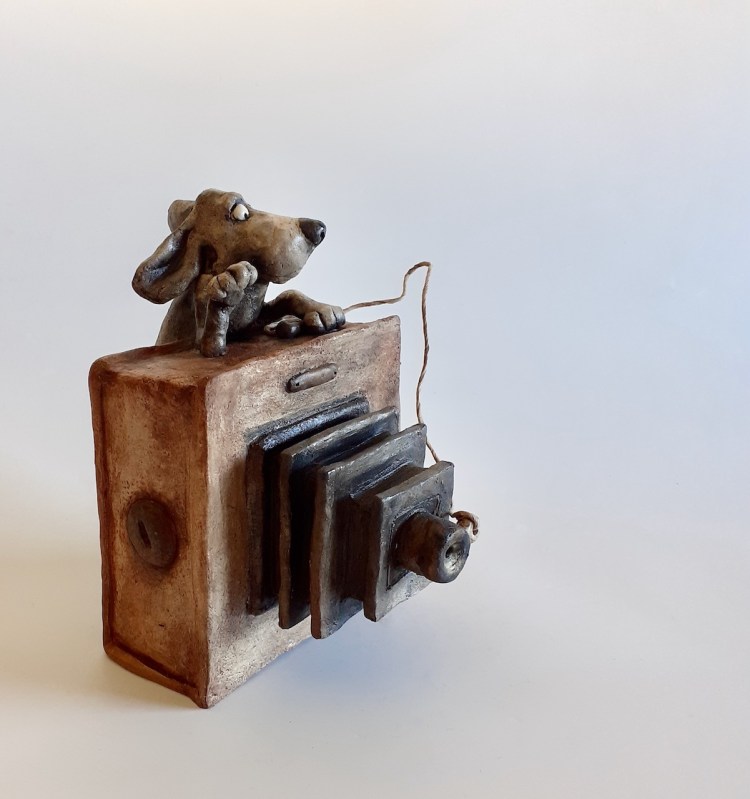 Se faire tirer le portrait, terre cuite patinée , rehausse or. H 15cm- 150 euros