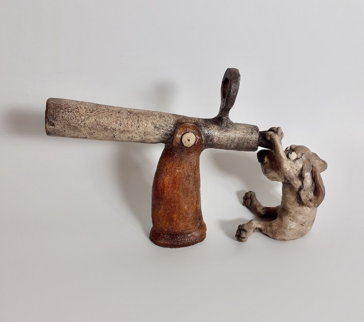 Quand est ce qu’on mange? terre cuite enfumée, H 14cm 200 euros